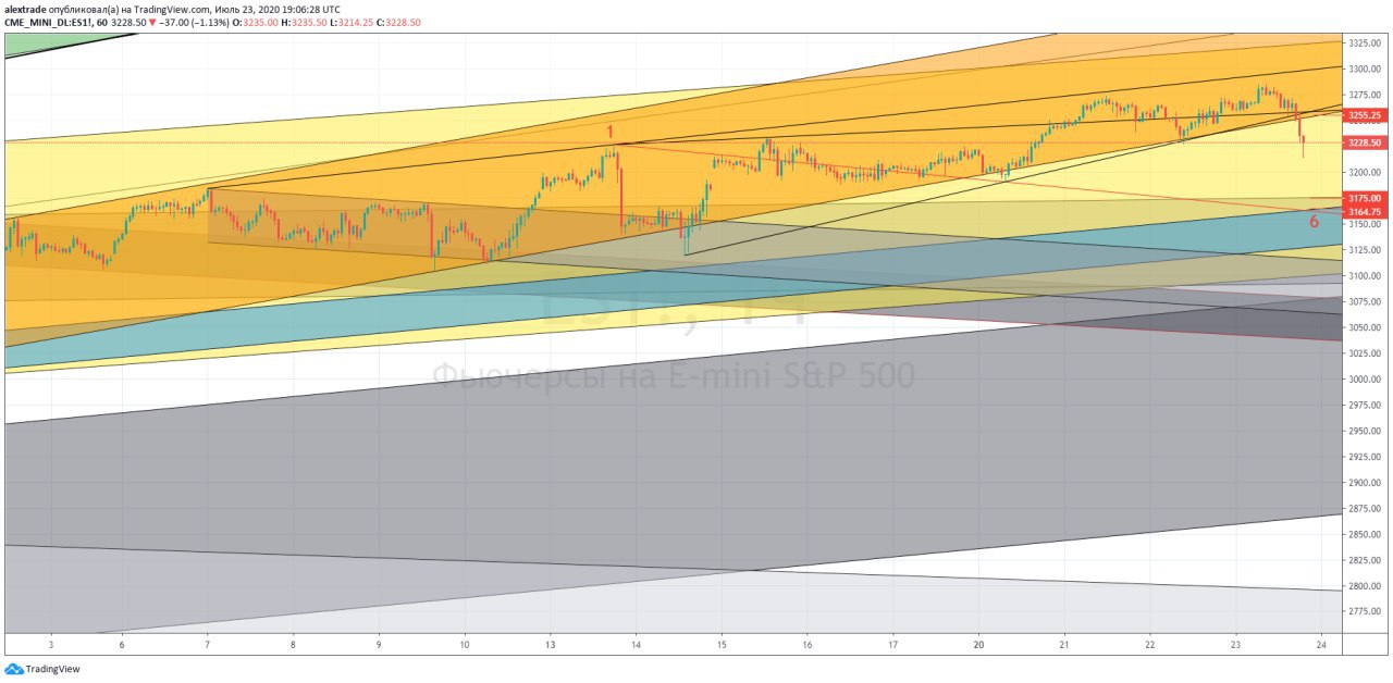🇺🇸Фьючерс SP500, активировалась Медвежья Волна Вульва, пробой с ретестом снизу 3255, ранее пост о ее зарождении https://news.1rj.ru/str/pro_dengu/2007, здесь на этом графике тоже самое, просто с каналами и сигналками, выделил 1-6 красным, цель снижения 3175-3162, пока идет неплохо. Открыл шорт. По нефти брент тоже шорт от 43,80 пока идет в +, снижаемся и здесь. По нефти завтра пост будет на канале. @pro_dengu #SP500