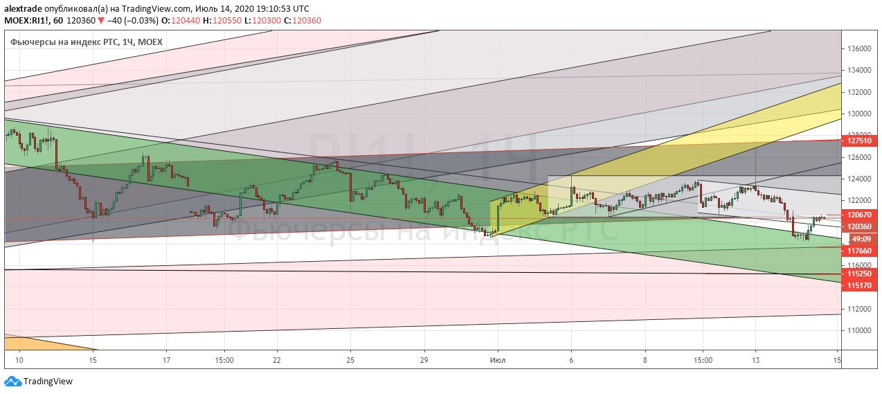 🇷🇺Фьючерс на индекс РТС (Ри) 120 360 в моменте, похоже мы наконец вывалились из боковика (темно серый канал) 120 670-127 510, мы тестируем снизу сейчас нижнюю границу этого боковика, это уже третья попытка, первый прокол был 15 июня, второй 30 июня, даже день закрывали ниже, сейчас идет третий,. 117 600+ поддержка, но основная зона 115 250-115 450. Ри сейчас слабее SP 500. Ри любит падать на опережение. Медка должны налить медведям в Ри, разводная шпилька на 126 940 вчера уже была. @pro_dengu #РТС