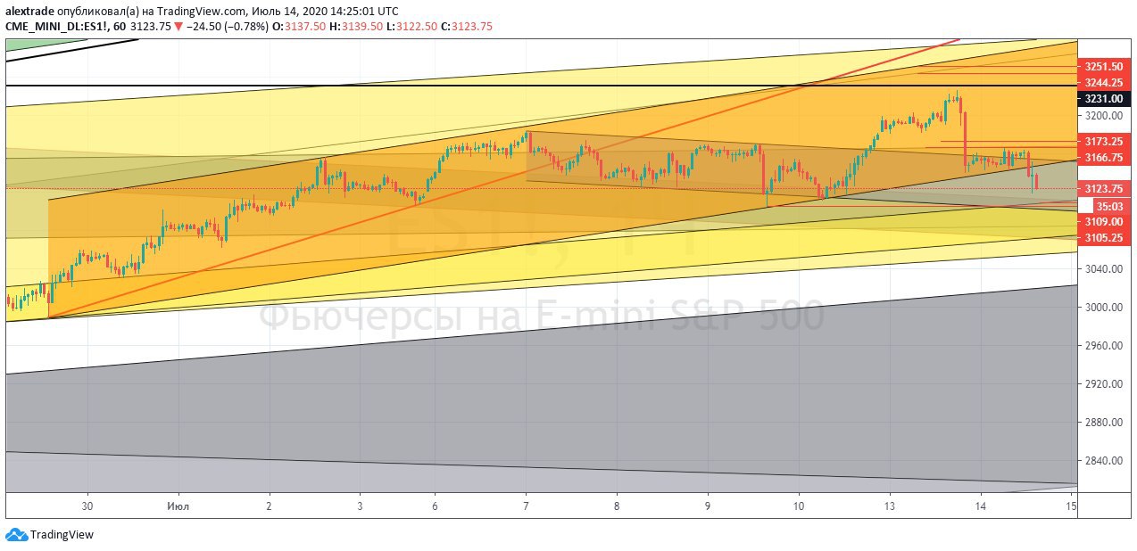 Фьючерс SP500, 3214 закрытие (+1,12%), макс.3233, мин. 3119, сказалось сильное закрытие прошлой недели, по итогам недели выросли. В понедельник и часть вторника был удар вниз, затем росли, был прокол фрактала 3231, прокол слабый 3233, за ним последовал откат на 3188.