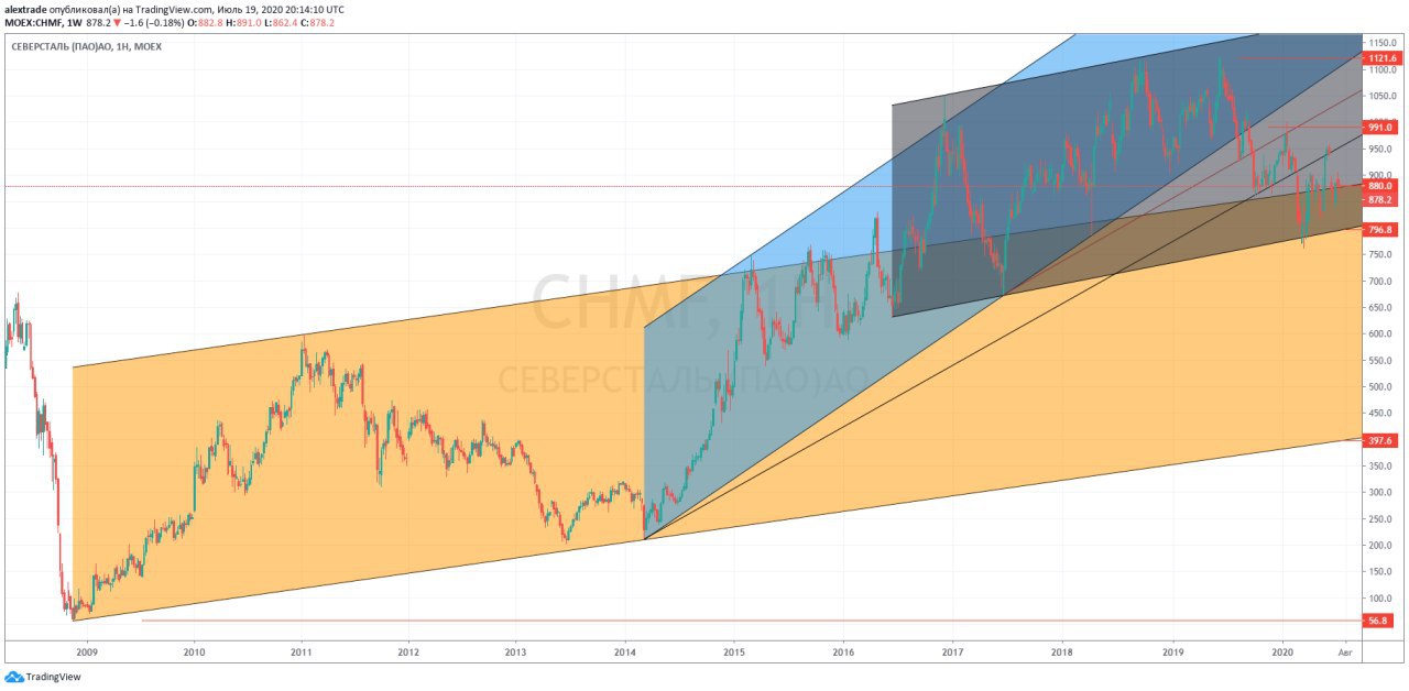 Никаких обновлений глобальных минимумов не было уже более 10 лет, это признак сильной акции. Сейчас мы в районе 880 рублей, это верхняя граница глобального канала роста. И одновременно мы в сером апканале, пока нижняя граница его стоит, росту в среднесроке не угрожает пока ничего, но прокол канала вниз был, это ослабляет его нижнюю границу.