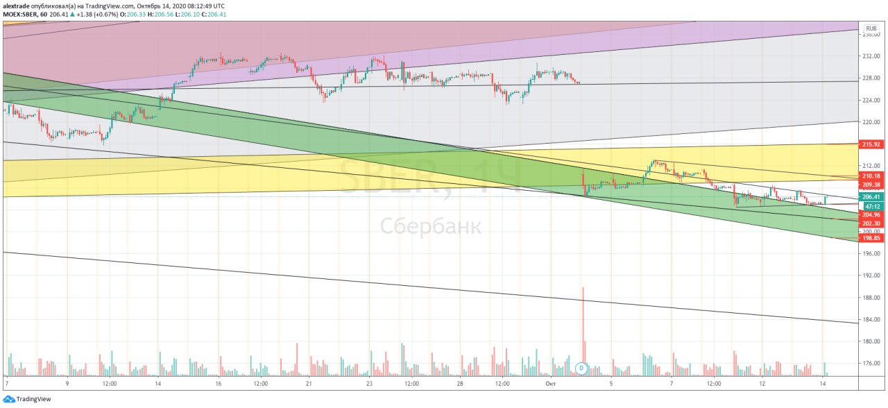 Акции Сбербанка об, 11 октября 2020 г, изменение среднесрочной и краткосрочной картины