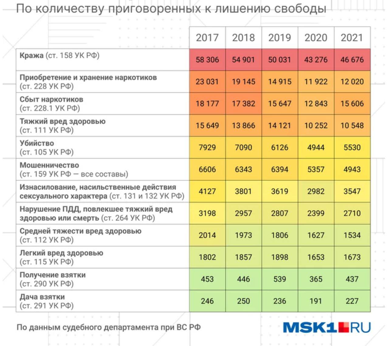 Мем о ст.228, как о «народной» не соответствует действительности. Первой по числу приговоров является «кража».