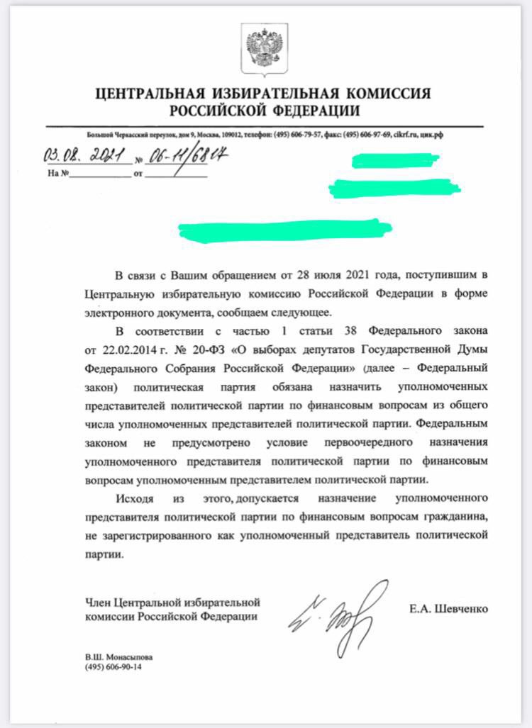 "Из числа указанных представителей политическая партия, выдвинувшая федеральный список кандидатов, обязана назначить уполномоченных представителей по финансовым вопросам."