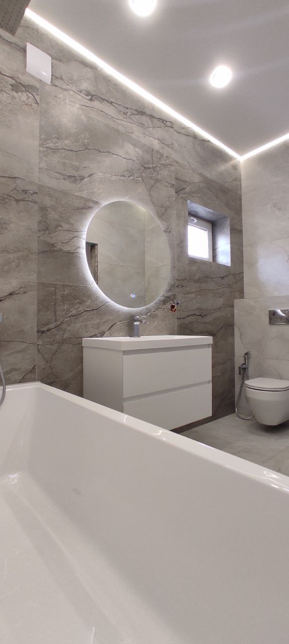 По итогу заказчики очень довольны, ванная у них получилась действительно красивая. У людей есть чувство вкуса. Было очень приятно у них работать, энергетика очень светлая.