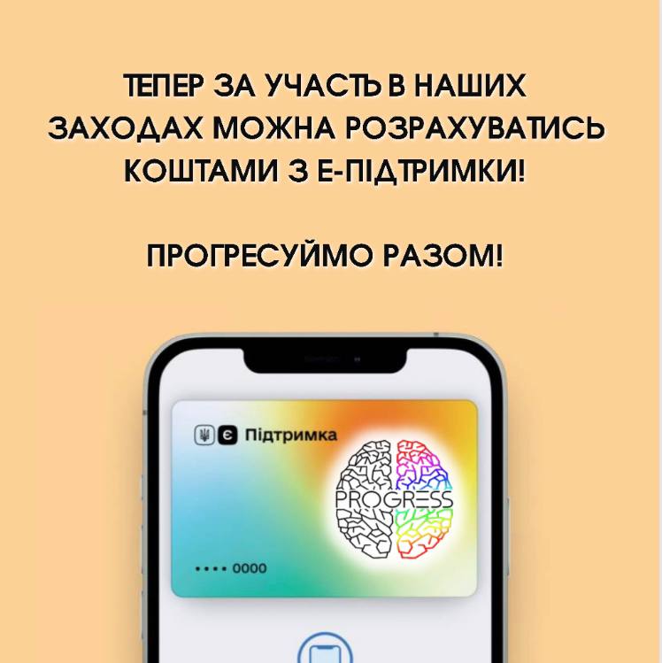 ✅ За допомогою карти Є-Підтримка ви з легкістю можете зареєструватись на будь-які заходи від платформи Progress!
