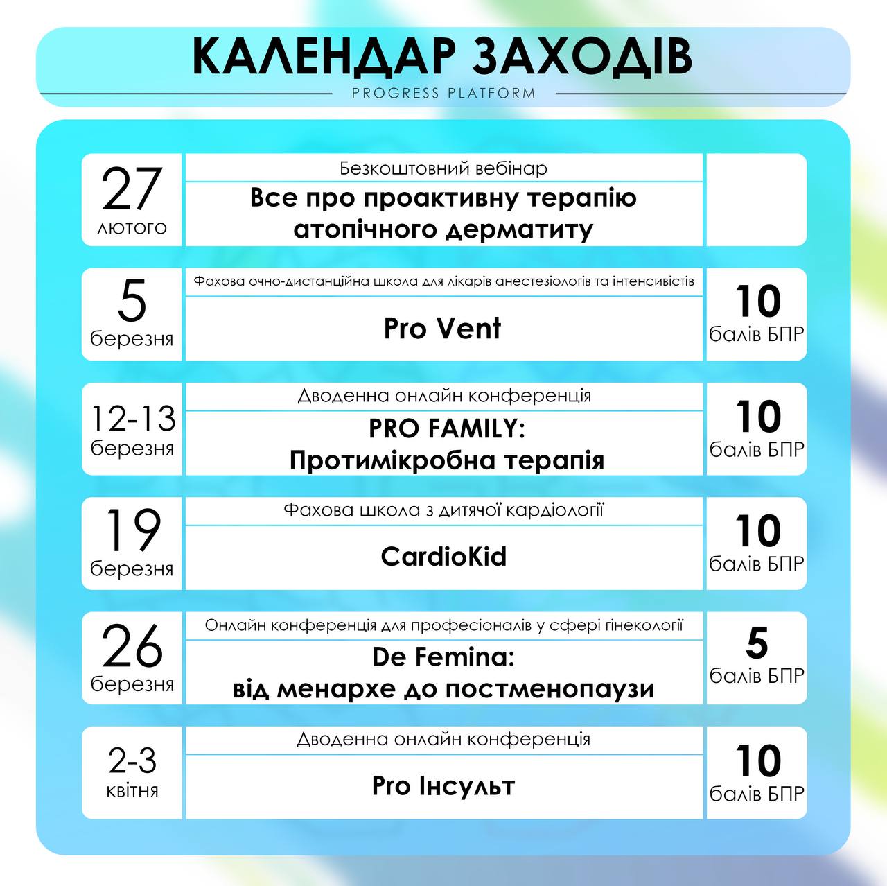 Календар заходів Progress Platform📆