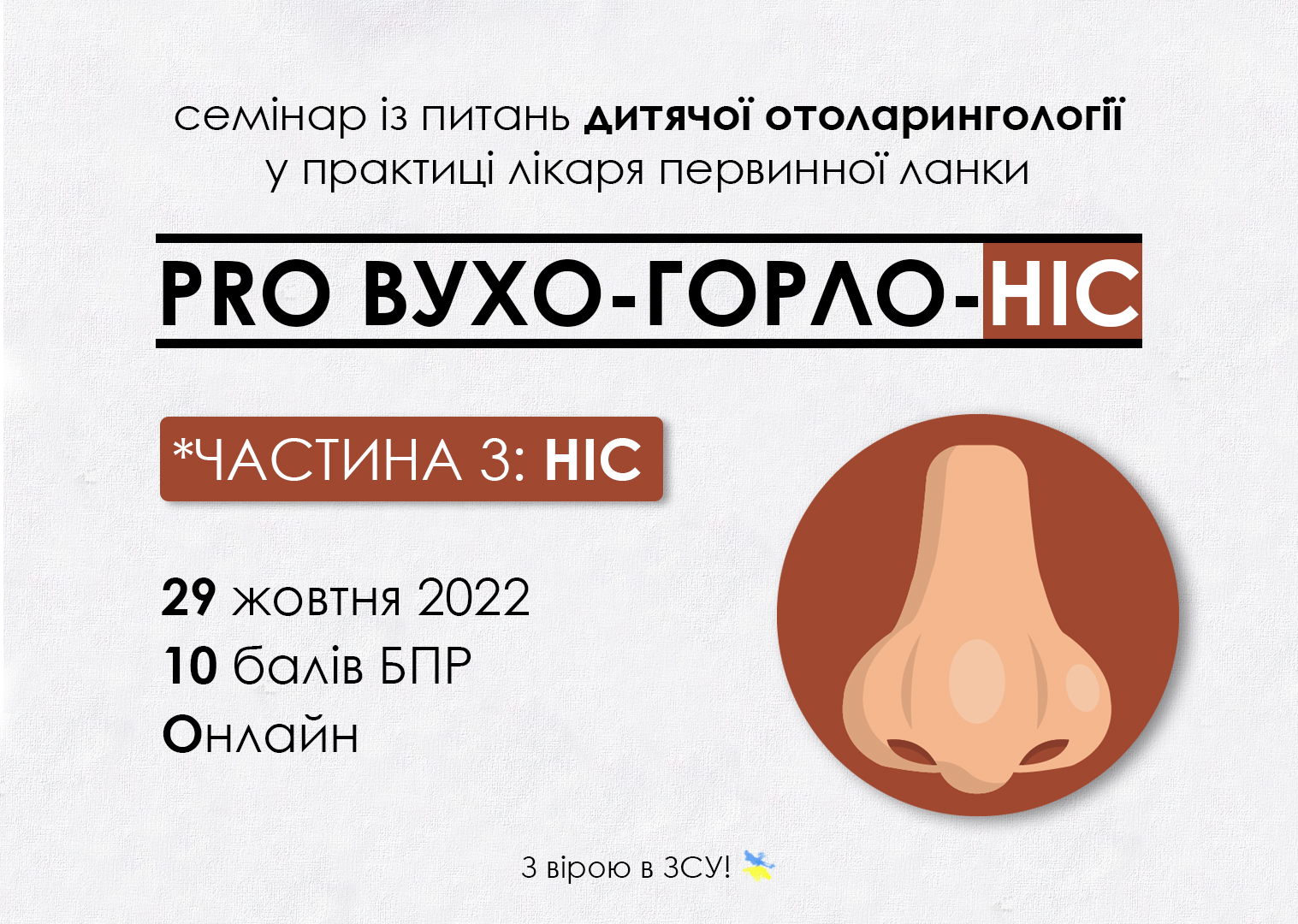 - Pro Вухо-Горло-Ніс (частина 3: Ніс) онлайн семінар з питань дитячої отоларингології, 10 балів БПР - незабаром старт реєстрації