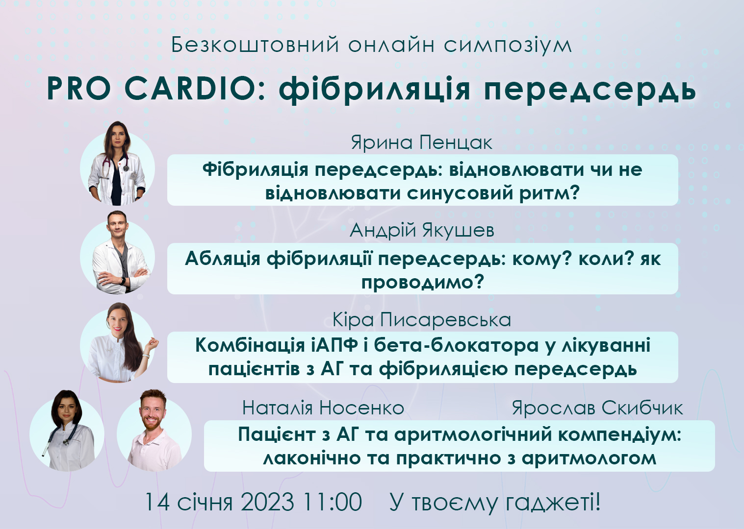 Запрошуємо приєднатись до симпозіуму PRO CARDIO: фібриляція передсердь, де обговоримо наступні питання: