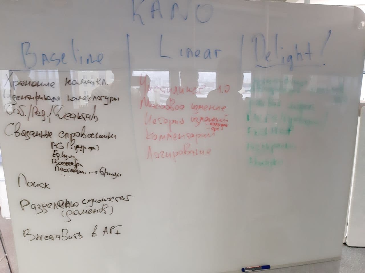 📌 Категорирование с помощью модели KANO (Baseline, Linear, Delight) фич, которые должны быть реализованы и которыми можем поступиться по результатам недели