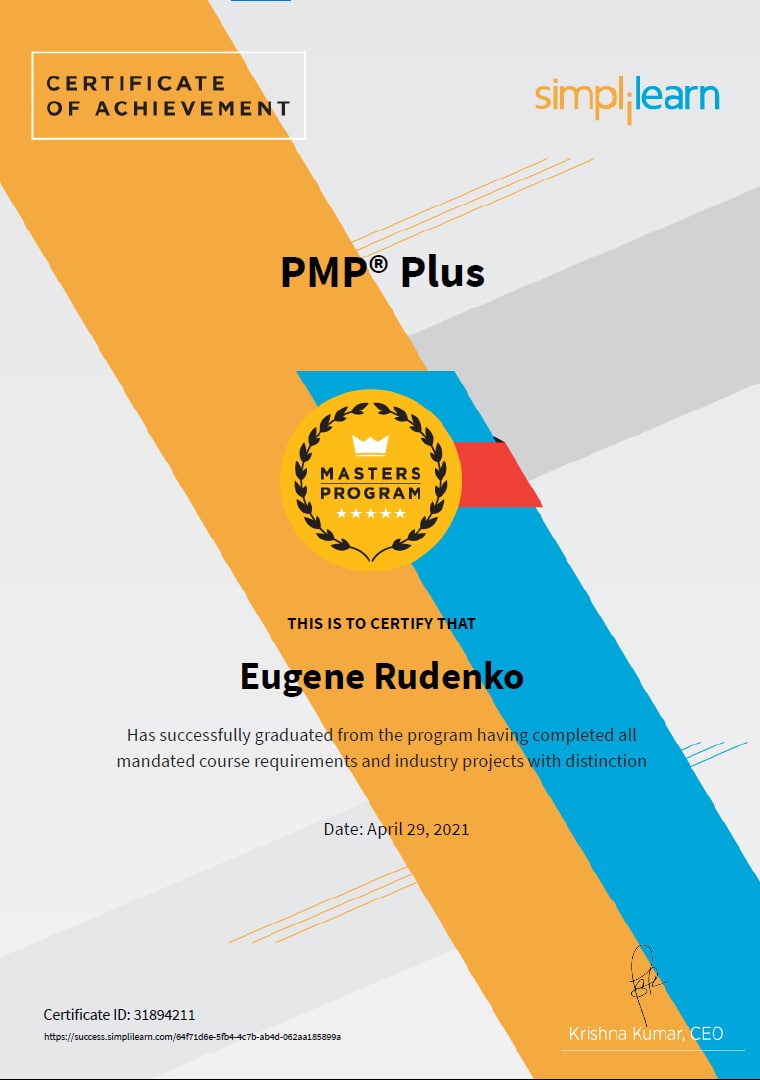 Завершил обучение по магистерской программе PMP Plus Masters 💪 и вчера наконец-то прислали сертификат😍🎉🎊