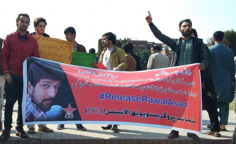 11 февраля 2019 года пакистанская полиция, известная своими многочисленными преступлениями: незаконными арестами, жестокостью и убийствами невинных людей, напала на офис «Прогрессивного молодежного альянса» в Мултане и арестовала находившихся там студентов. Им предъявлены обвинения по целому ряду уголовных статей, включая подстрекательство к мятежу. Студенческие активисты были арестованы вскоре после того, как они присоединились к акции протеста, организованной движением пуштунов-тахафузов (PTM) в Мултане, для того чтобы выразить свою солидарность с ними. Они протестовали против убийства одного из их лидеров, Армана Луни, который был профессором колледжа и несколько дней подвергался пыткам со стороны полицейских, в результате которых умер. Кампания солидарности c профсоюзами Пакистана (PTUSC) призывает студентов, рабочих и их организации проявить солидарность с Равалом и его семьей, которая опасается за его жизнь.