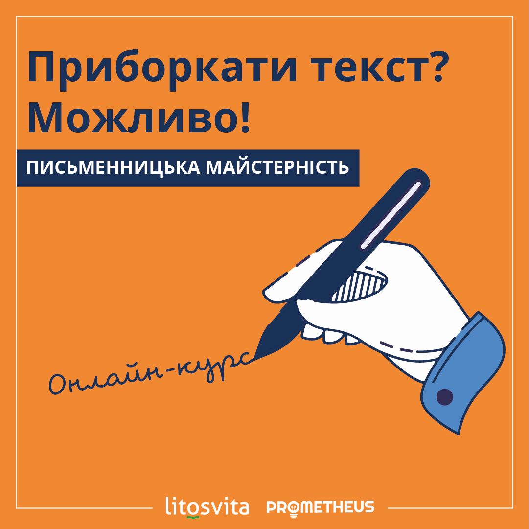 25 листопада на Prometheus+ стартує комплексна програма опрацювання текстів від Сергія Жадана, Любка Дереша, Андрія Куркова та інших топових українських письменників, критиків та видавців. На вас чекають 13 відеолекцій, 5 тижнів інтенсивного навчання, натхнення, творчих завдань та роботи із текстом, та чат-підтримка із кураторами програми.