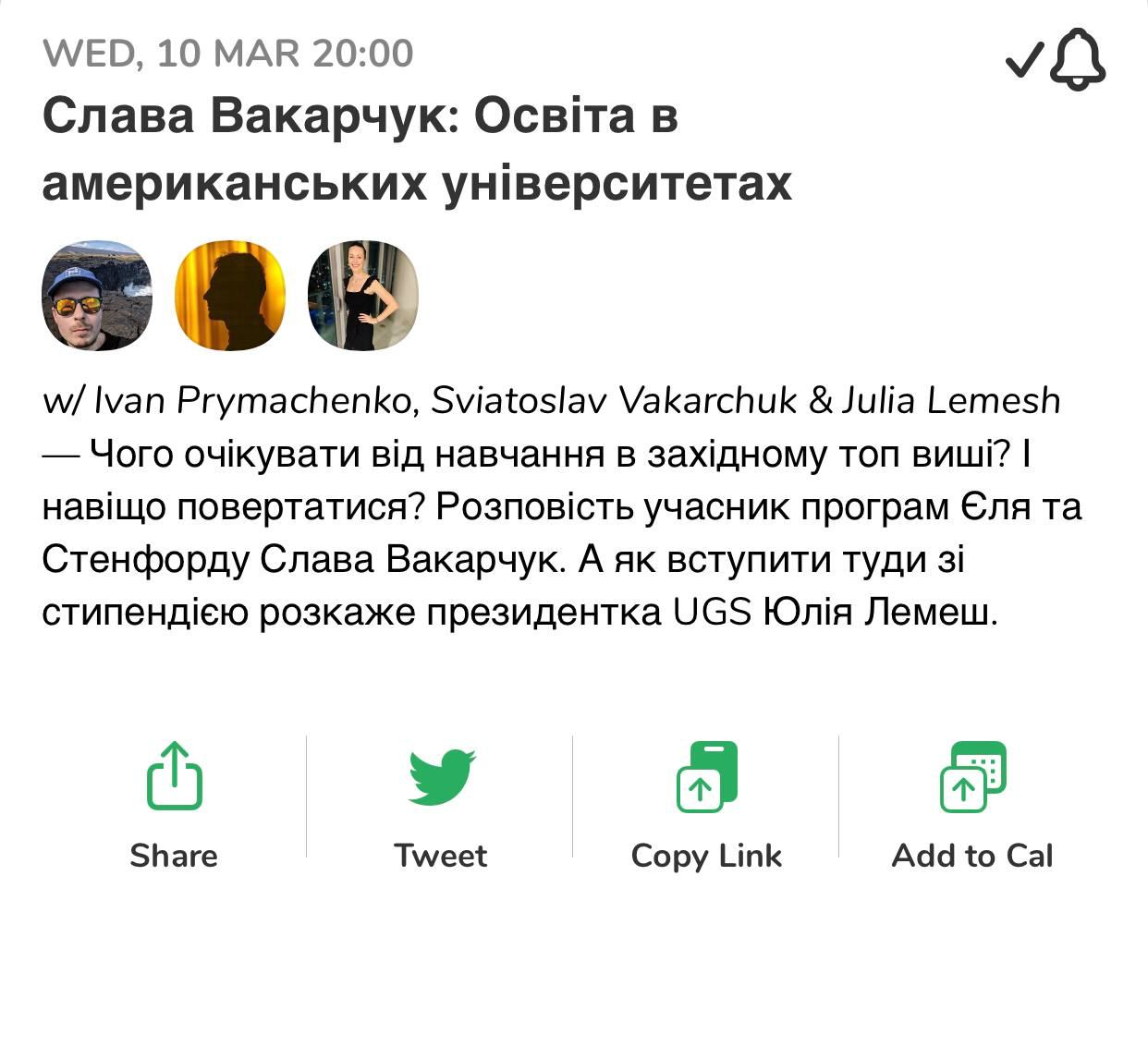 Запрошуємо на дискусію «Освіта в американських університетах» в Clubhouse зі Славою Вакарчуком та Юлією Лемеш! Організатор та модератор дискусії — Іван Примаченко, співзасновник Prometheus 🚀