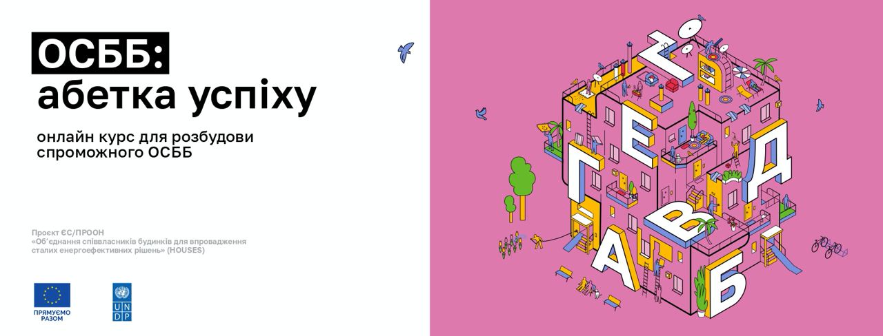 Серію курсів «ОСББ: Абетка успіху» створено в межах проєкту ЄС/ПРООН «Об’єднання співвласників будинків для впровадження сталих енергоефективних рішень» (HOUSES).