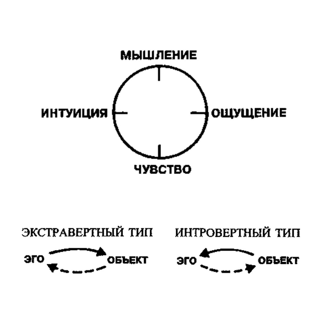 Юнг выделил восемь типологических групп две личностные установки интроверсию и экстраверсию — и четыре функции и или типа ориентации — мышление, ( ощущение, интуицию и чувство — каждая из которых может действовать либо интровертным, либо экстравертным образом.