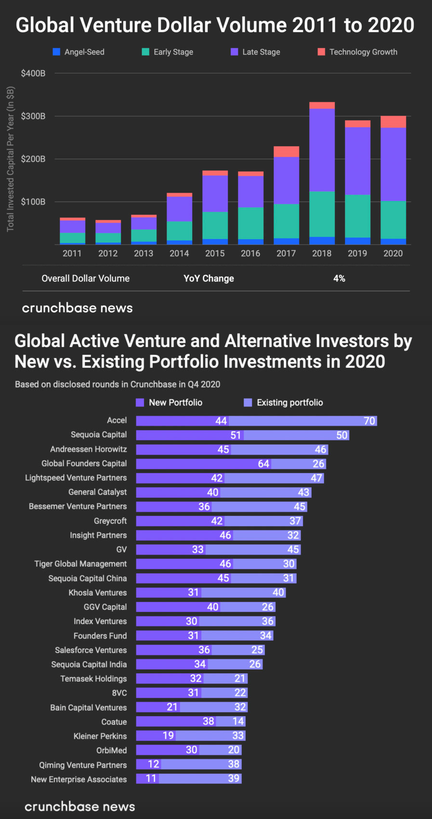 Crunchbase подвел итоги 2020 года. Интересно посмотреть. Хотя в заметке больше фокус на 4 кв. 2020. Но мы помним, что 3 кв. 2020 был ударным, поэтому смотрим под этим углом.