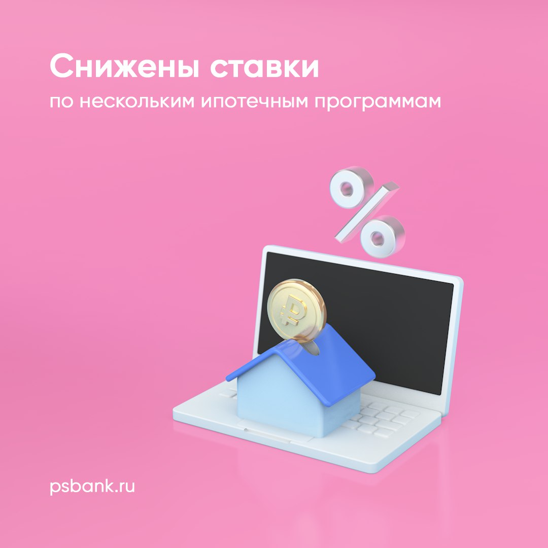 ✨ ПСБ снизил ставки по программам «Новостройка» и «Рефинансирование». Максимальное снижение — 3 процентных пункта.