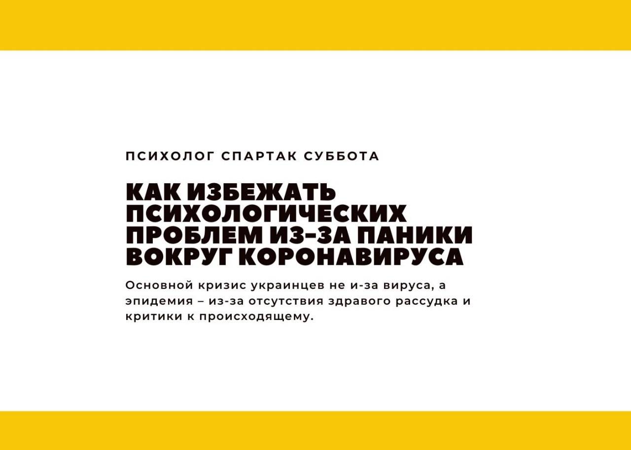 Спартак Суббота, психотерапевт, научный руководитель Института когнитивного моделирования специально для «Украинской правды» выделил 5 основных психологических проблем, которые только усугубят сложившуюся ситуацию с коронавирусом и с которыми нужно бороться каждому.