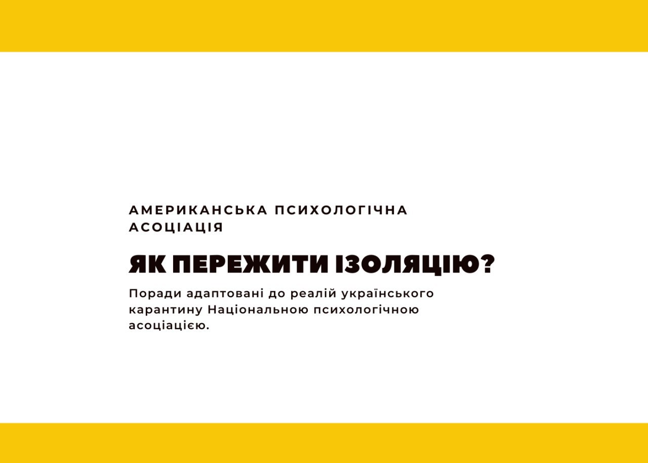 Як пережити ізоляцію? Поради від Американської психологічної асоціації з адаптацією до реалій українського карантину від Національної психологічної асоціації. Радимо вам ознайомитися із цим текстом та поширити його далі.