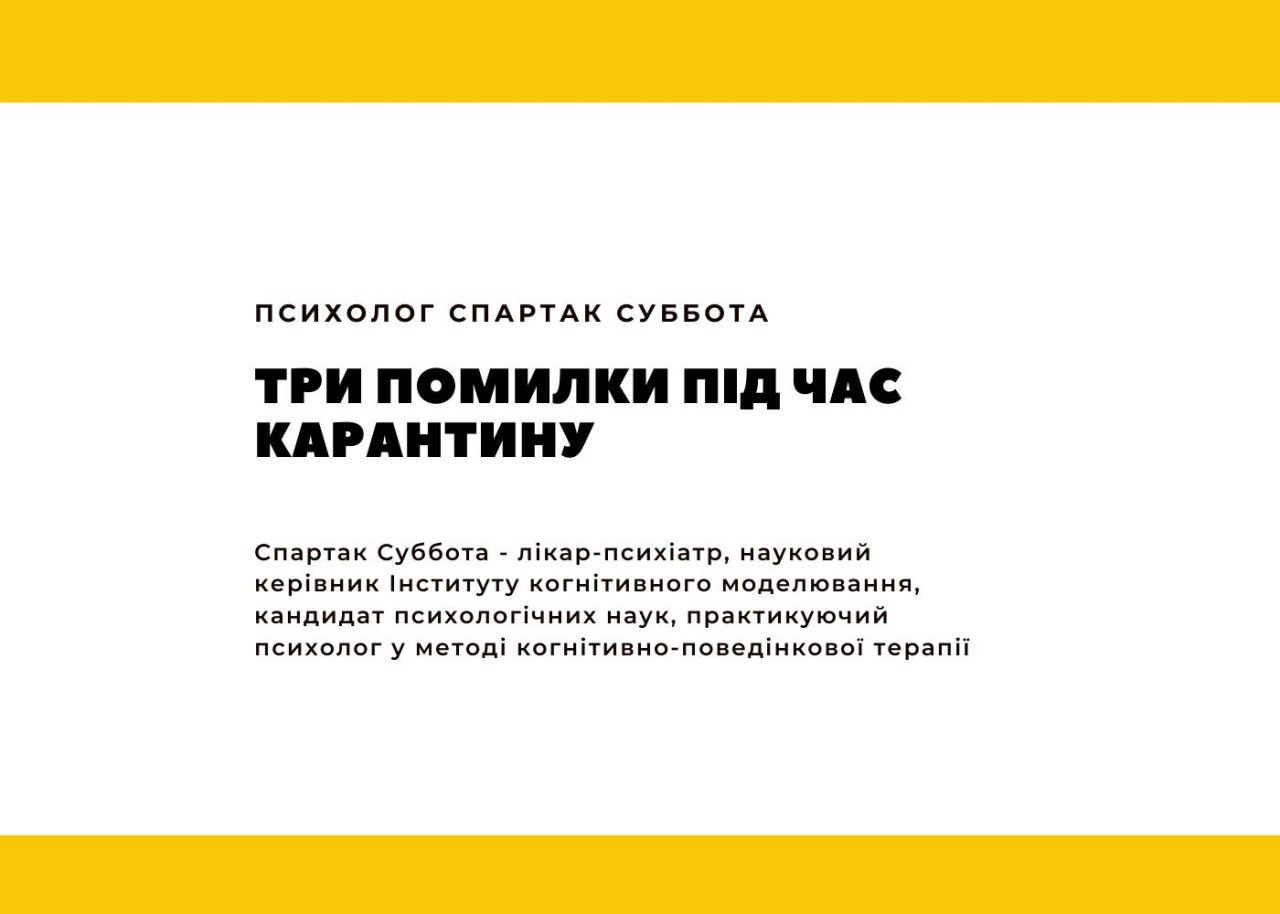 Ми встигли накоїти помилок під час карантину, та можемо попередити ще одну, про яку говорить лікар-психіатр Спартак Суббота у відео. Закликаємо відповідально ставитися до рекомендацій МОЗ України. Свідомі дії вбережуть нас усіх.