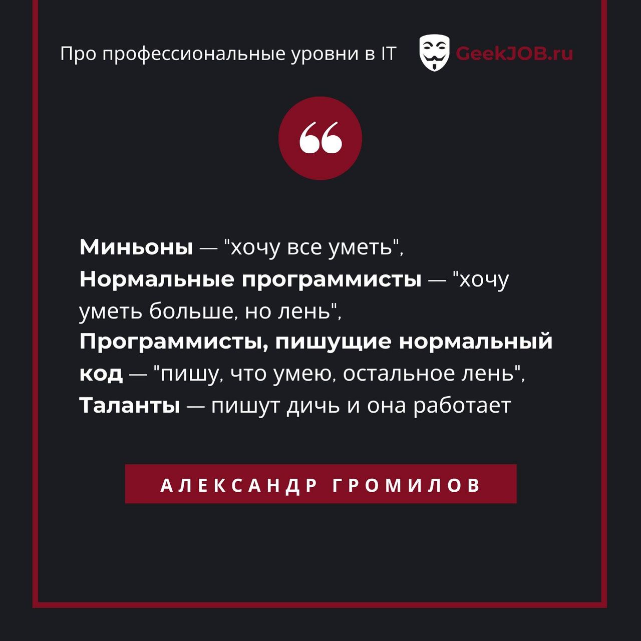 GeekJob и Кира Кузьменко на Facebook вчера подняли обсуждение о градации разработчиков. Получилось интересное обсуждение, которое ребята оформили в цитаты. Делюсь с вами ссылкой, т.к. все нет возможности сюда подгрузить.