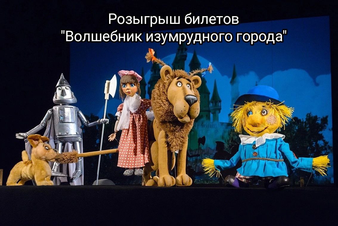 Счастливчику подарим два билета на 3D-феерию "Волшебник Изумрудного города" 6+, показ которой состоится 26 мая в 10:30 в Чувашском государственном театре кукол