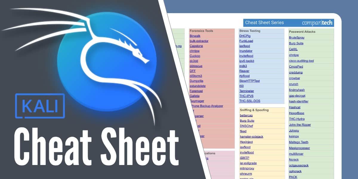 Міні шпаргалка з багатьма популярними командами та стандартними сценаріями для тестування на безпеку з набором тулзів з калі лінукса.
