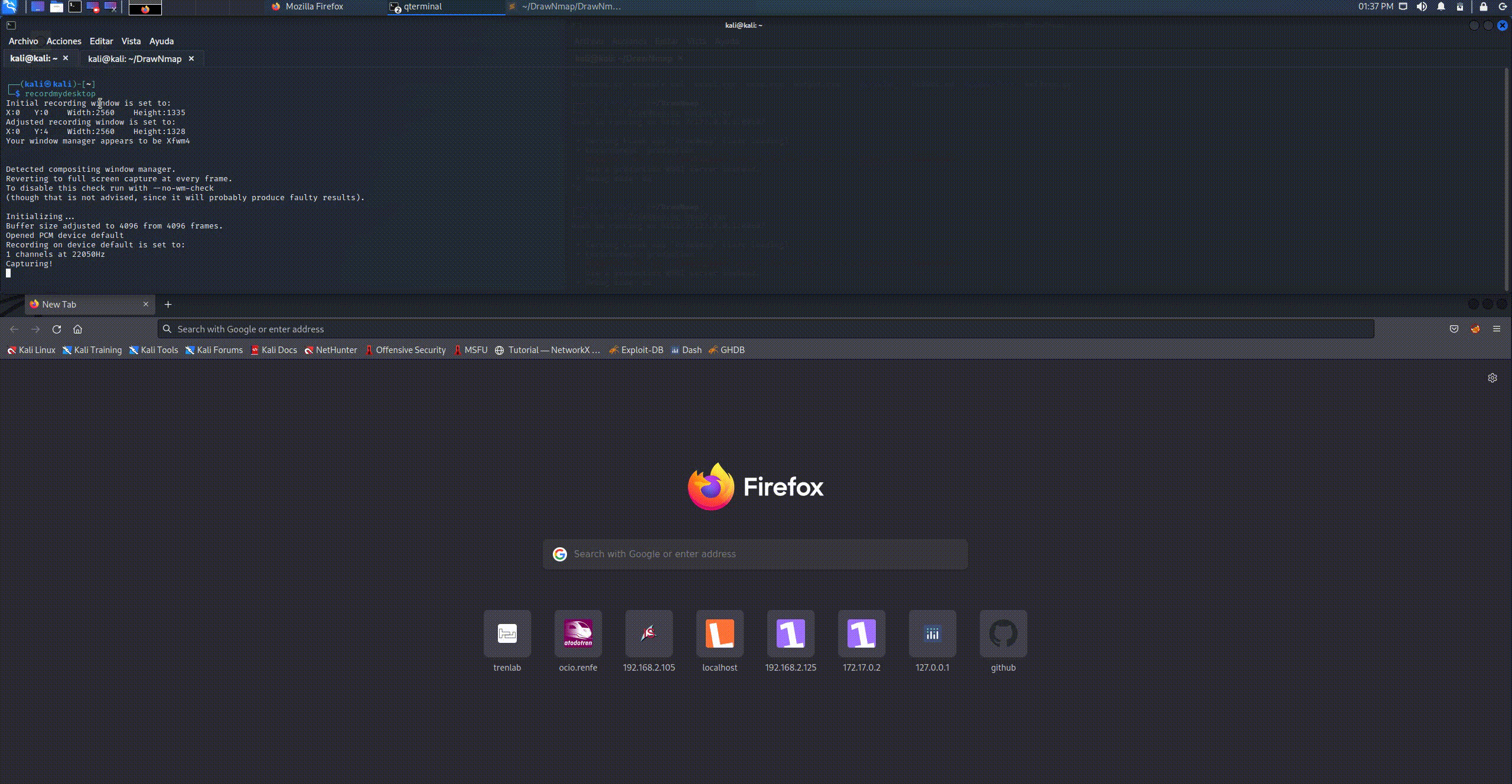 Інструмент, розроблений на Python для перемальовування вмісту сканування Nmap у форматі XML на діаграмі мережі. Вузли представляють кожен зі сканованих активів у мережі з відповідними відкритими портами. Фільтрування портів дозволяє відображати на графіку лише пристрої, у яких цей порт увімкнено.