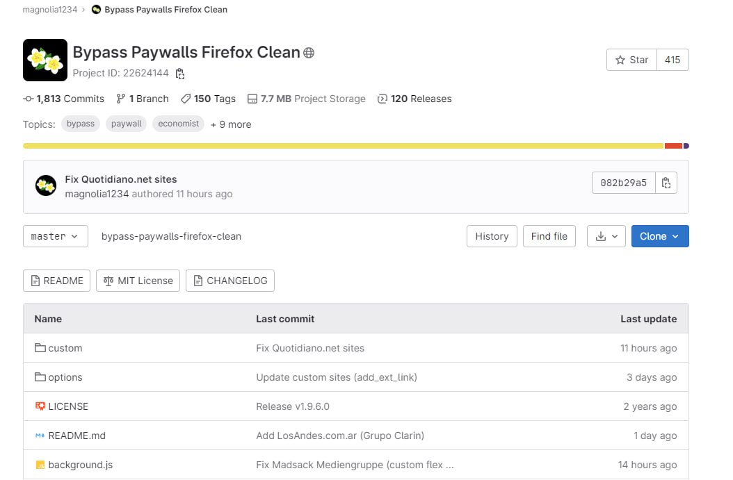 Bypass Paywalls Firefox Clean - це браузерне розширення, яке дозволяє читати платні статті з сайтів які закриваються від читання безкоштовних користувачів.