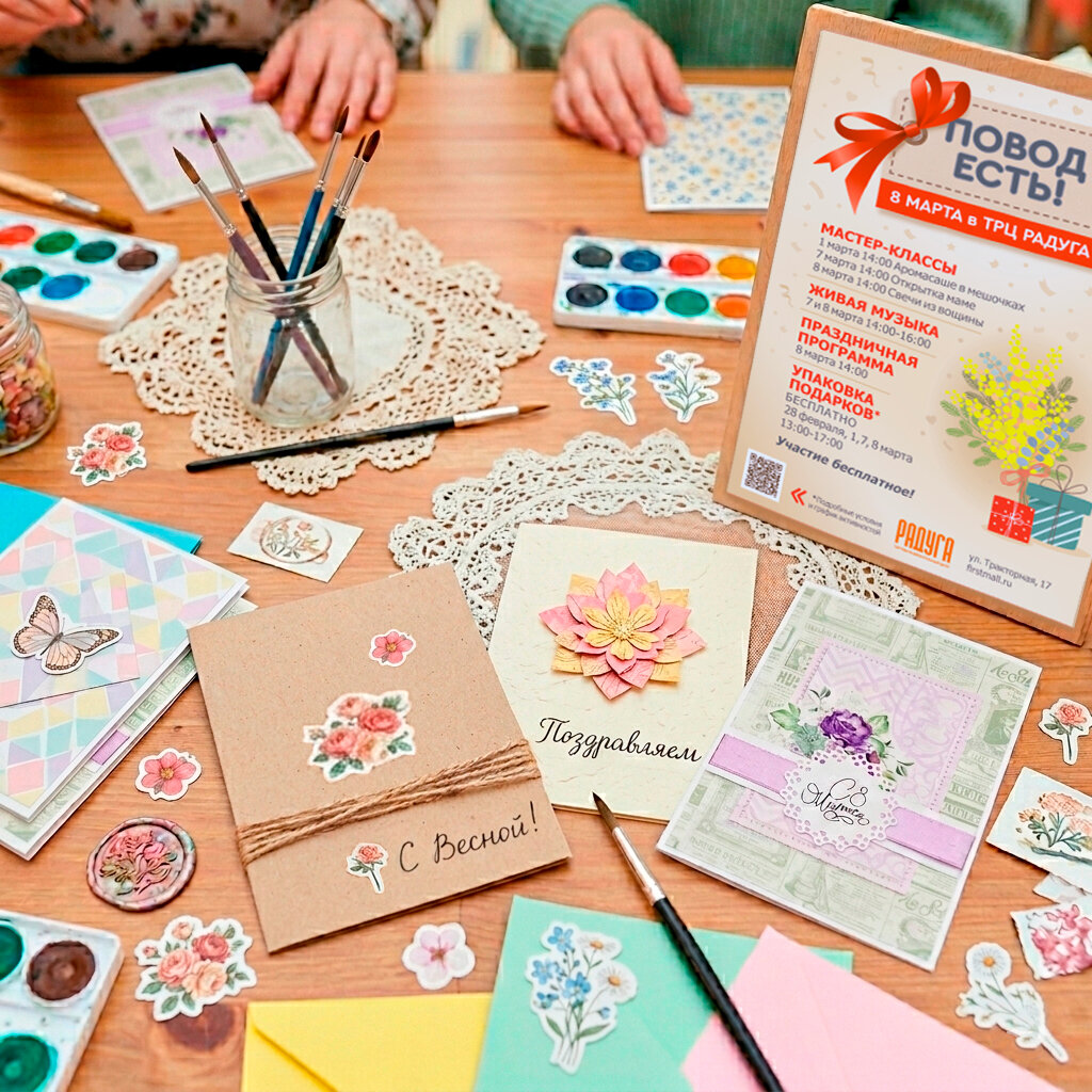 📍 7 марта в 14:00 — МК «Делаем открытки», живая музыка и комплименты для девушек.