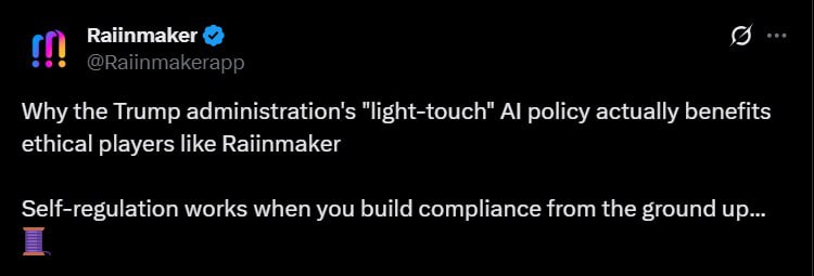 Why the Trump administration's "light-touch" AI policy actually benefits ethical players like Raiinmaker