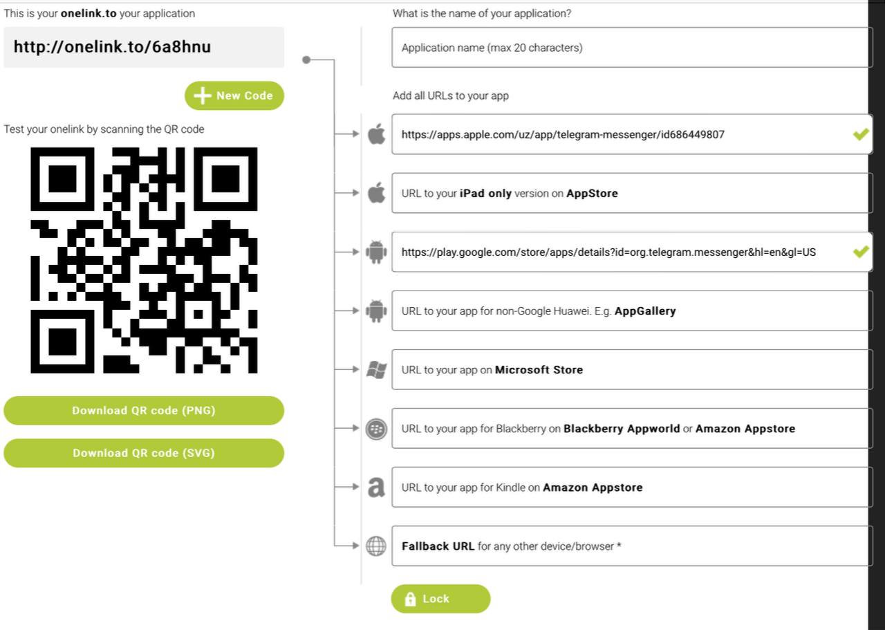 (Masalan) Telegram'ni yuklab olish uchun: http://onelink.to/6a8hnu