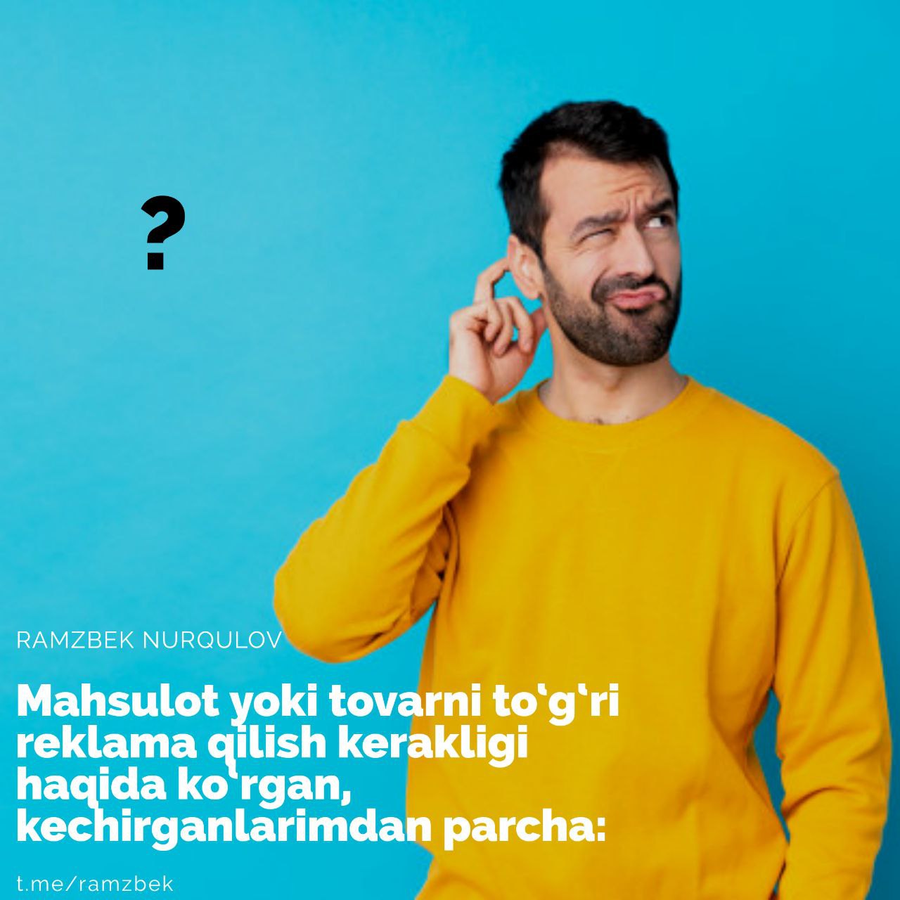 Mahsulot yoki tovarni to‘g‘ri reklama qilish kerakligi haqida ko‘rgan, kechirganlarimdan parcha: