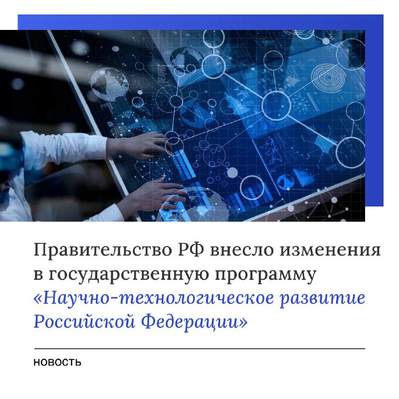 Правительство РФ внесло изменения в государственную программу «Научно-технологическое развитие Российской Федерации»