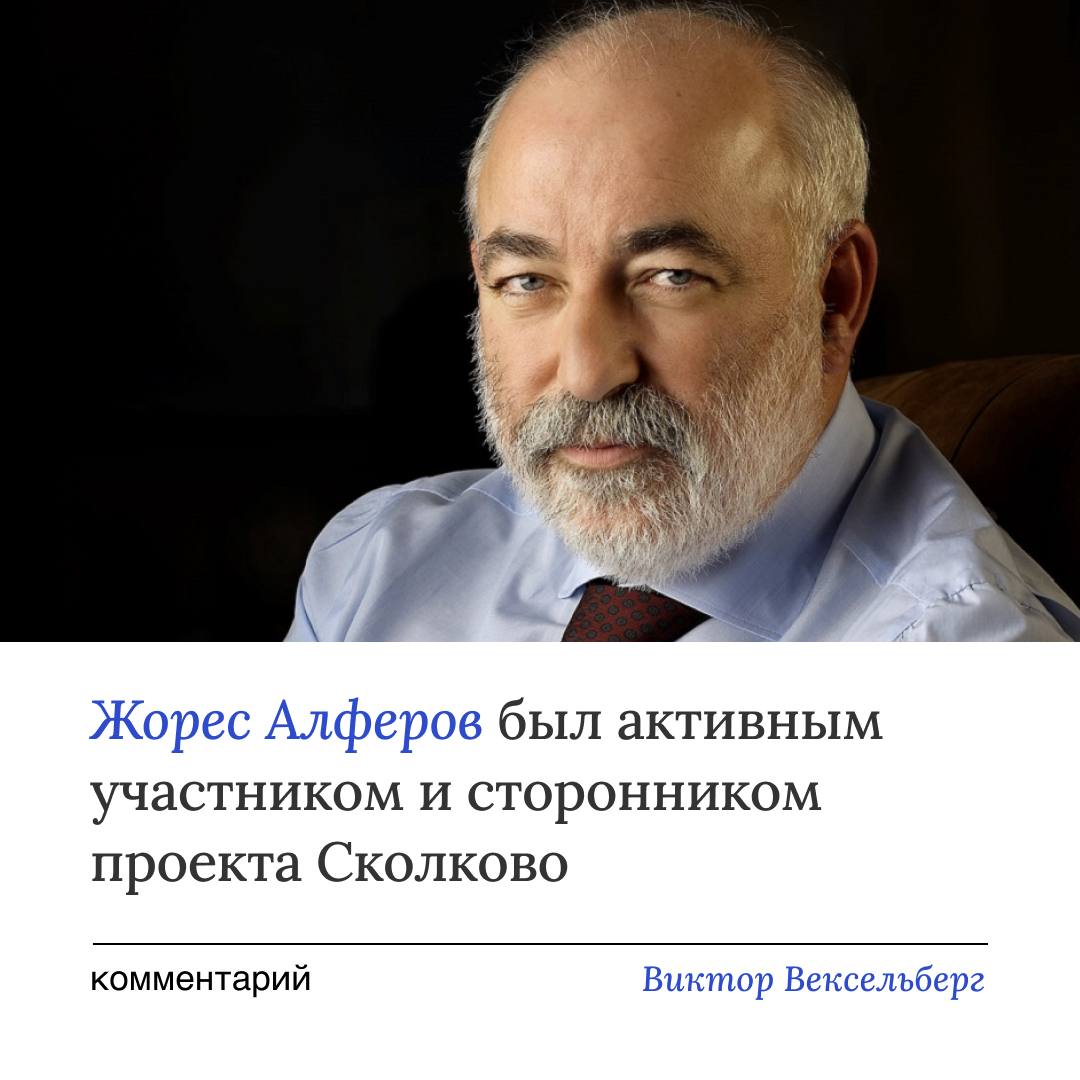 Вопрос о присуждении Жоресу Алферову звания «почетного гражданина N1» инновационного центра «Сколково» на рассмотрение Попечительского Совета Фонда «Сколково» @oi_press представил председатель Попечительского совета Сколковского института науки и технологий, член Совета директоров Фонда «Сколково» Виктор Вексельберг: