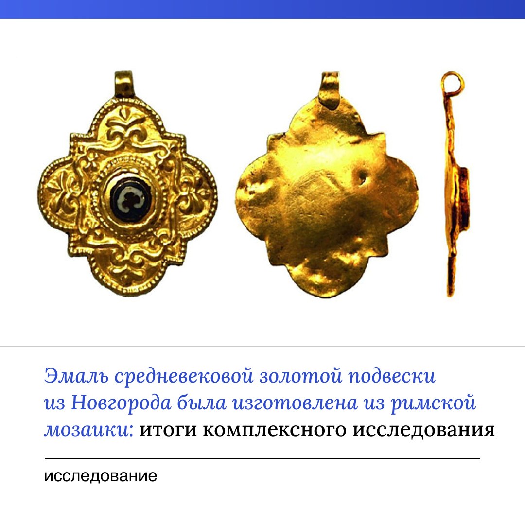 Группа ученых из Института археологии РАН, Казанского (Приволжского) федерального университета, Национального исследовательского центра «Курчатовский институт» и Федерального научно-исследовательского центра «Кристаллография и фотоника» РАН изучила подвеску с эмалевой вставкой, найденную в слое начала XIII века в Новгороде.
