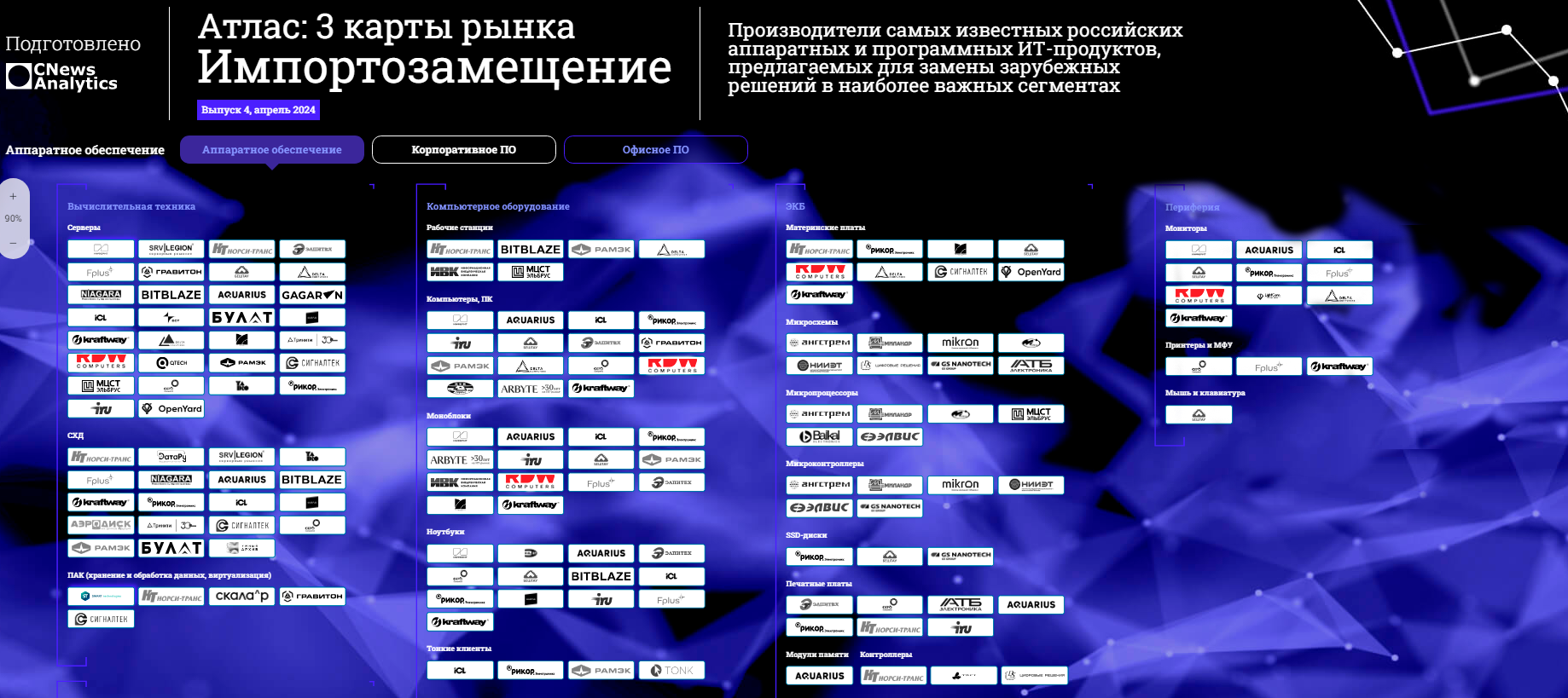 Друзья, свет увидела актуальная версия ежегодного атласа CNews Analytics «Импортозамещение-2024».