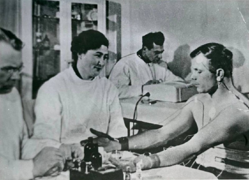 На фотографии: медицинский контроль Юрия Гагарина, 12 апреля 1961 года. Снимок из фондов московского Музея космонавтики.