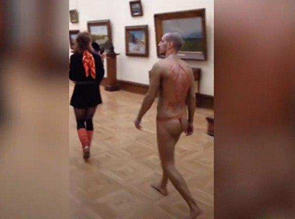 Тем временем в Москве посетитель Третьяковской галереи разделся до трусов и в таком виде прошелся по нескольким залам, после чего покинул здание музея.