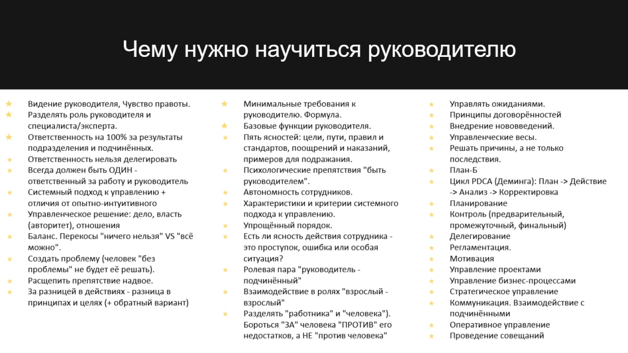 Прокачайте навыки: делегирования, контроля, регламентации, подбора персонала, мотивации, работы с возражениями сотрудников