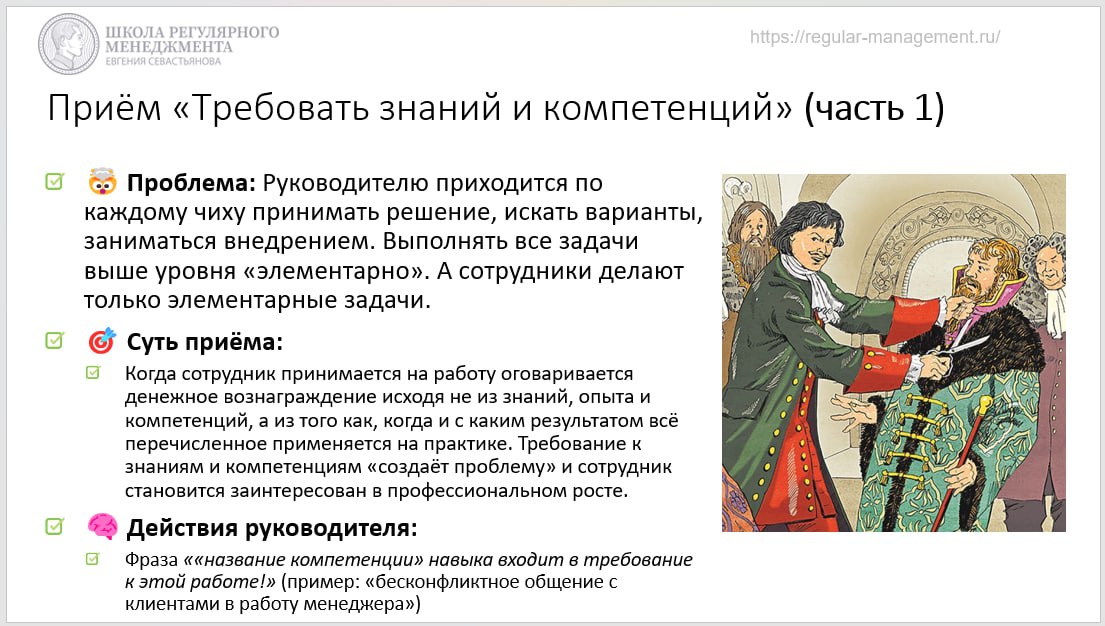 P.S.: Если хотите научиться применять упомянутые и ещё 47 приёмов так, чтобы не оставить шанса некачественной и несамостоятельной работе сотрудников - присоединяйтесь к годовой комплексной программе обучения руководителей "Профессионал системного управления".
