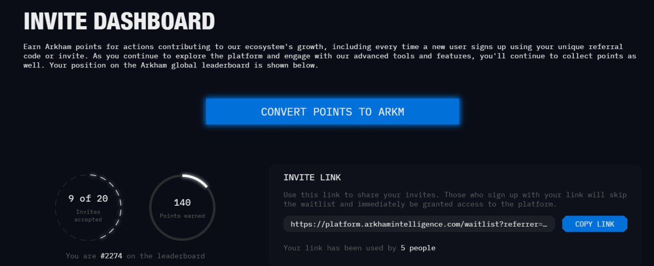 ❕Помимо этого, как многие из вас видели, Arkham собирается листится на Binance. Также вчера они открыли конвертацию поинтов в токены на своём сайте в разделе invite.