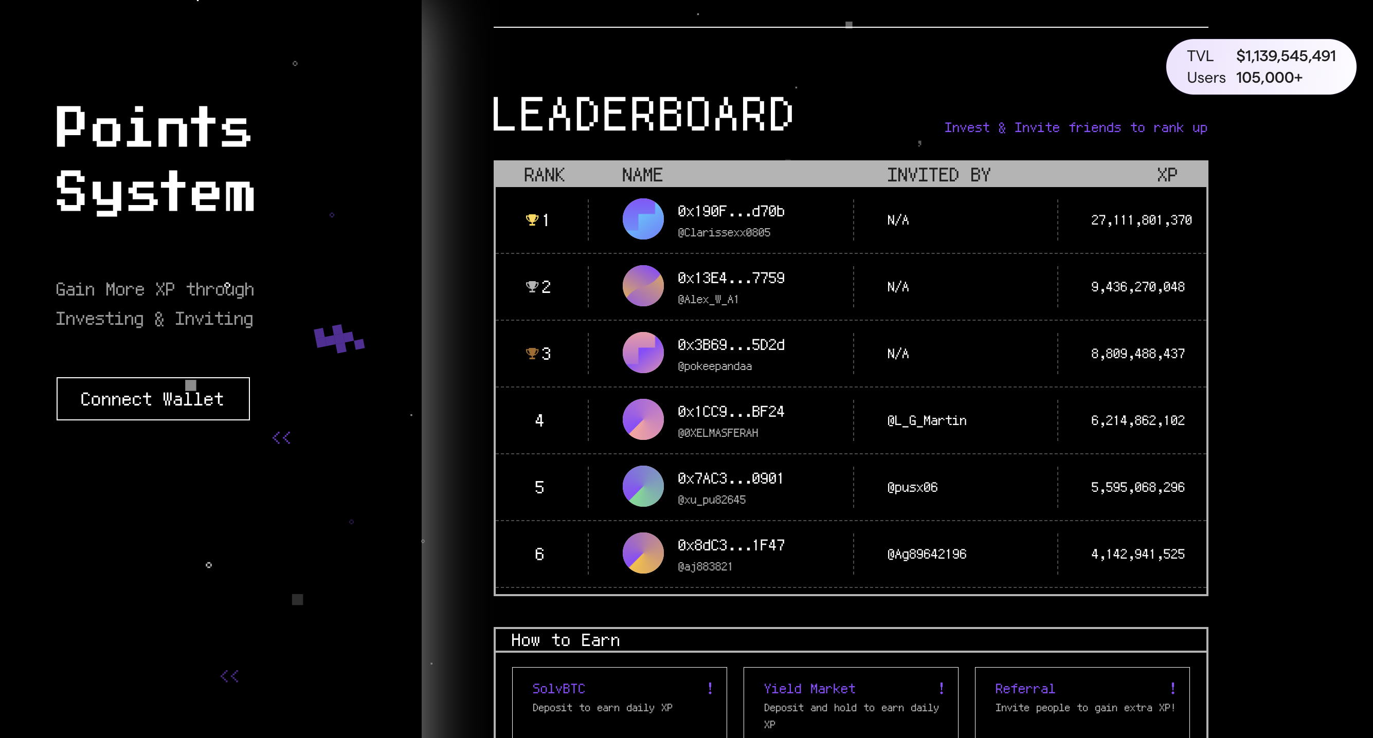 3. В разделе поинт системы можем отслеживать как увеличивается наше кол-во поинтов. На сайте доступны уровни, чем больше $BTC вы отправляете, тем больше поинтов вам будут начислять бонусом.