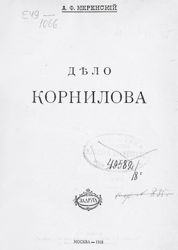 Керенский А. Ф. Дело Корнилова. Москва, 1918.