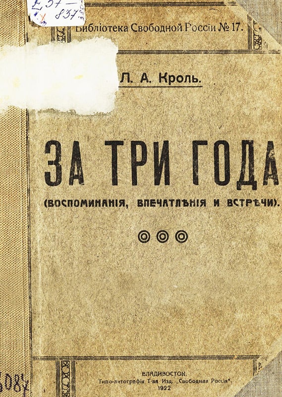 Кроль Л. А. За три года (воспоминания, впечатления и встречи). Владивосток, 1922.