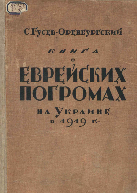 Гусев-Оренбургский С. И. Книга о еврейских погромах на Украине в 1919 г. Петроград, 1921.