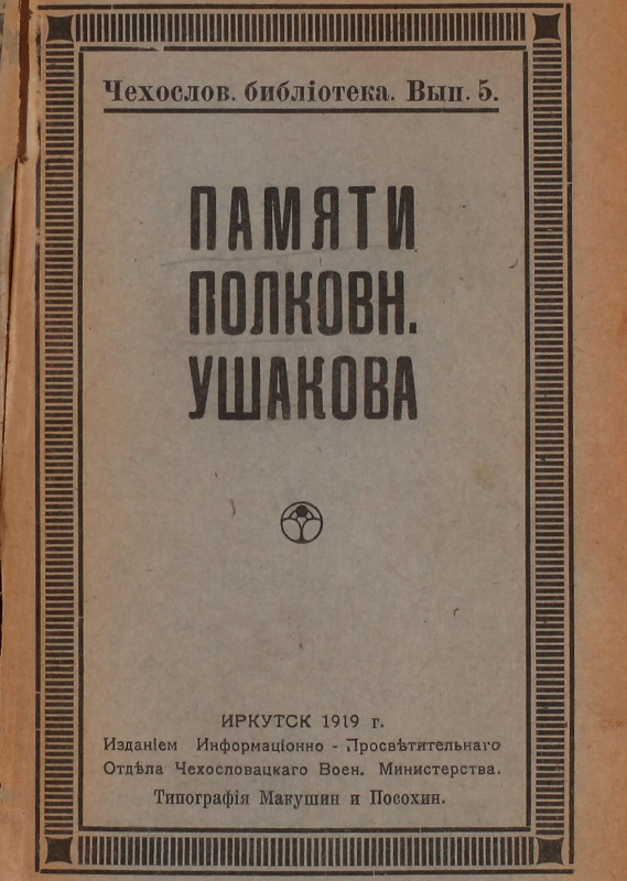 Изданная информационно-просветительским отделом Чехословацкого корпуса брошюра посвящена полковнику Борису Федоровичу Ушакову — начальнику штаба 2-й дивизии Чехкорпуса, сыгравшему огромную роль в восстании чехословаков, участнику штурма Канска и Иркутска. Б. Ф. Ушаков занимал должности начальника штаба Байкальского, а затем и Восточного фронтов. Погиб под станцией Мурино.