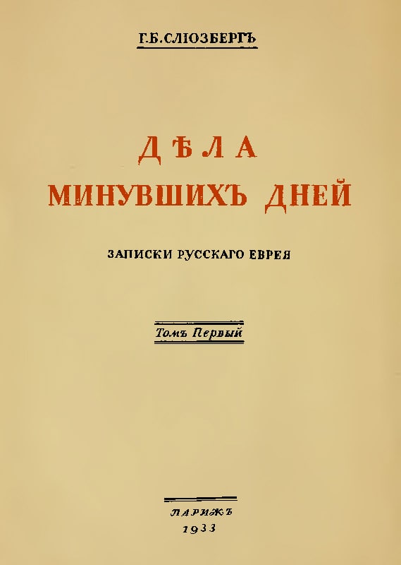 Г. Б. Слиозберг. Дела минувших дней. Записки русского еврея. Париж, 1933.