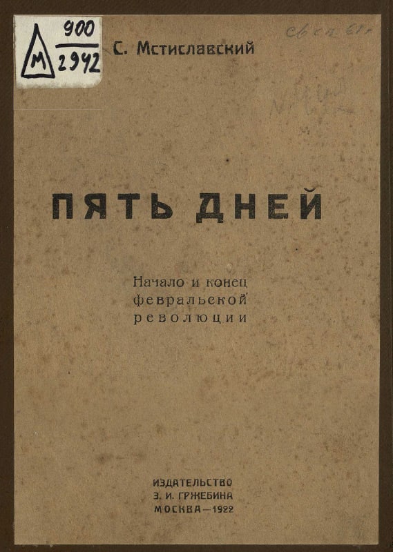 Мстиславский С. Д. Пять дней. Начало и конец февральской революции. Москва, 1922.