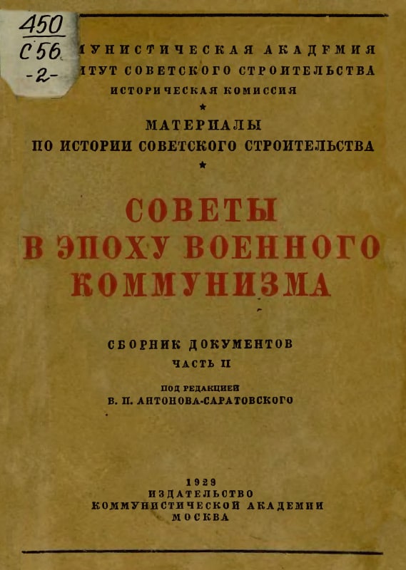 Советы в эпоху военного коммунизма. Москва, 1928-1929.